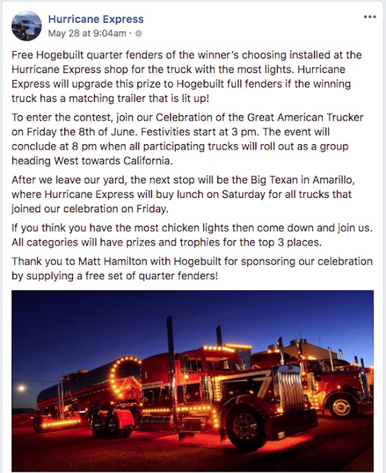 Hurricane Express Hosting Truck Parade Bound For California Truckers News